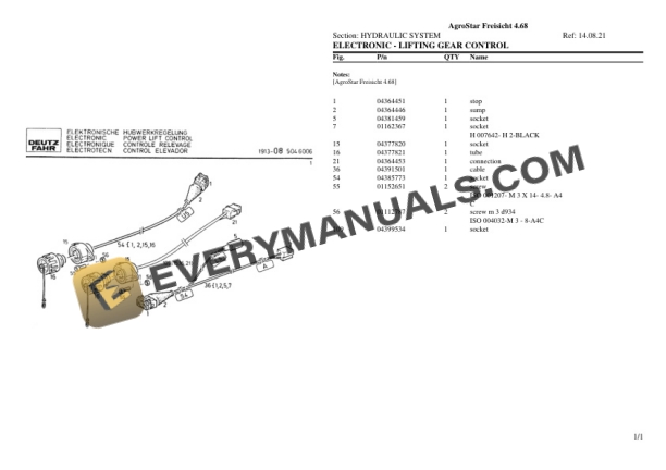 Deutz-Fahr AgroStar Freisicht 4.68 Tractor Parts Catalog PDF