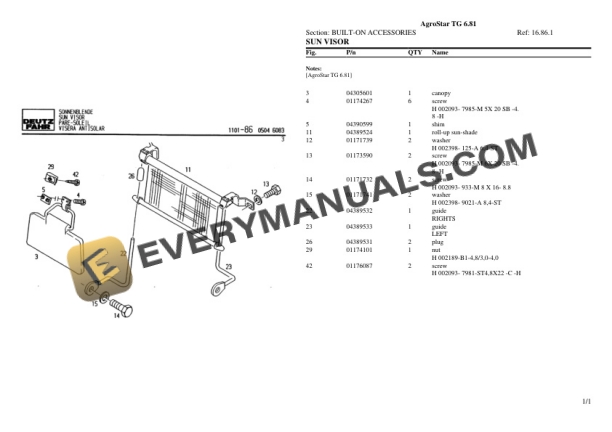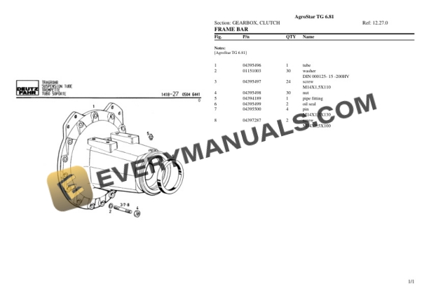 Deutz-Fahr AgroStar TG 6.81 Tractor Parts Catalog PDF