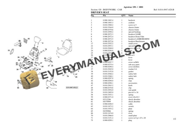 Deutz-Fahr Agrotrac 150 (1001) Tractor Parts Catalog PDF