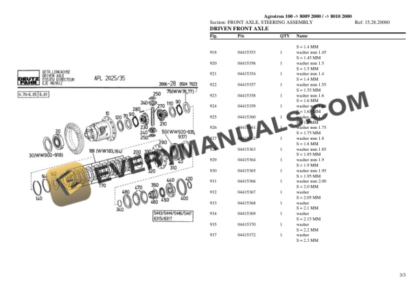 Deutz-Fahr Agrotron 100 (8009 2000, 8010 2000) Tractor Parts Catalog PDF