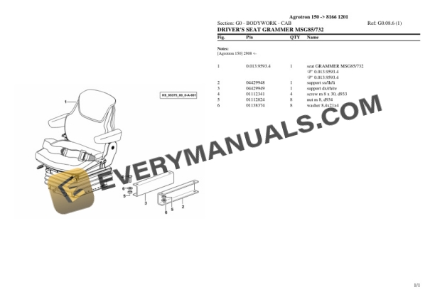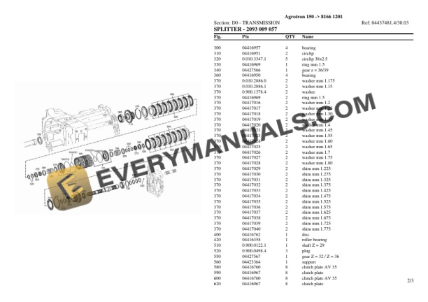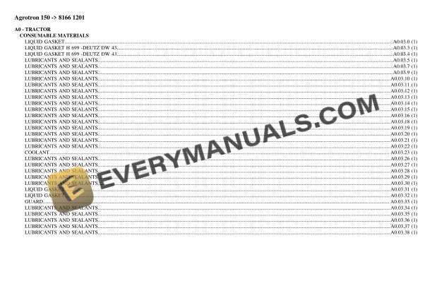 Deutz-Fahr Agrotron 150 (8166 1201) Tractor Parts Catalog PDF