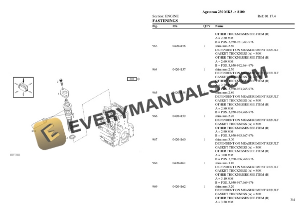 Deutz-Fahr Agrotron 230 MK3 (8100) Tractor Parts Catalog PDF