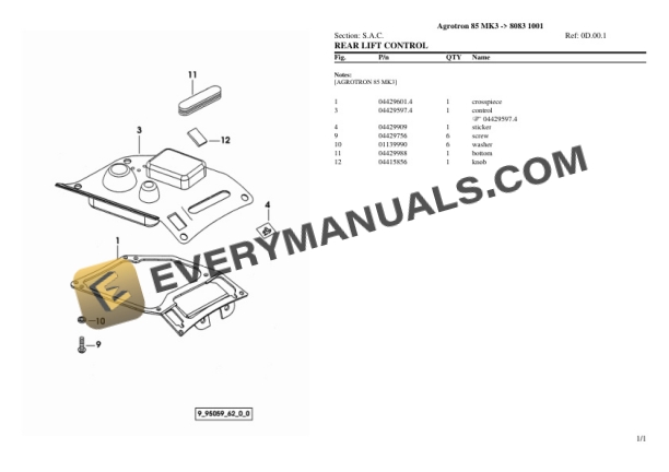 Deutz-Fahr Agrotron 85 MK3 (8083 1001) Tractor Parts Catalog PDF