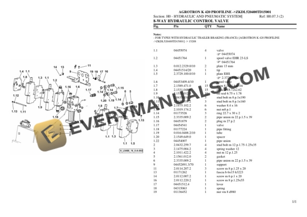 Deutz-Fahr AGROTRON K 420 PROFILINE (ZKDL520400TD15001) Tractor Parts Catalog PDF