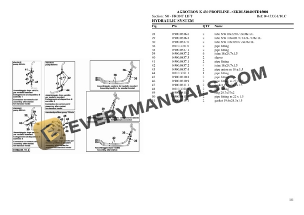 Deutz-Fahr AGROTRON K 430 PROFILINE (ZKDL540400TD15001) Tractor Parts Catalog PDF