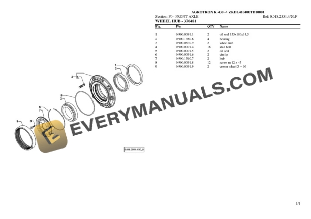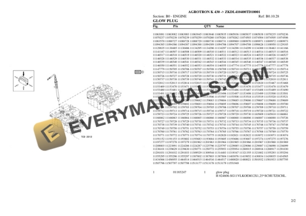 Deutz-Fahr AGROTRON K 430 (ZKDL410400TD10001) Tractor Parts Catalog PDF