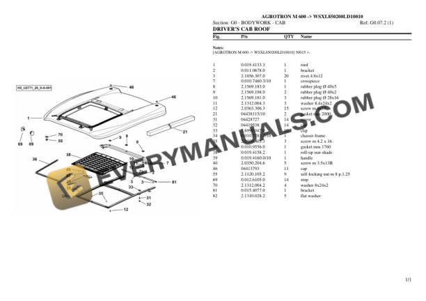 Deutz-Fahr Agrotron M 600 (WSXL850200LD10010) Tractor Parts Catalog PDF