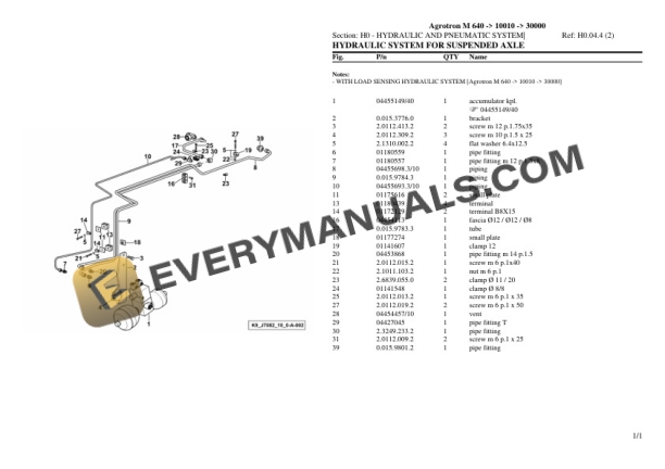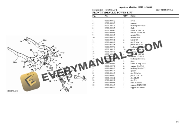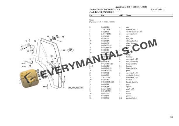 Deutz-Fahr Agrotron M 640 (10010 – 30000) Tractor Parts Catalog PDF