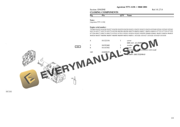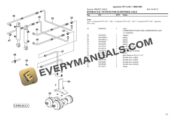 Deutz-Fahr Agrotron TTV-1130 (8060 2001) Tractor Parts Catalog PDF