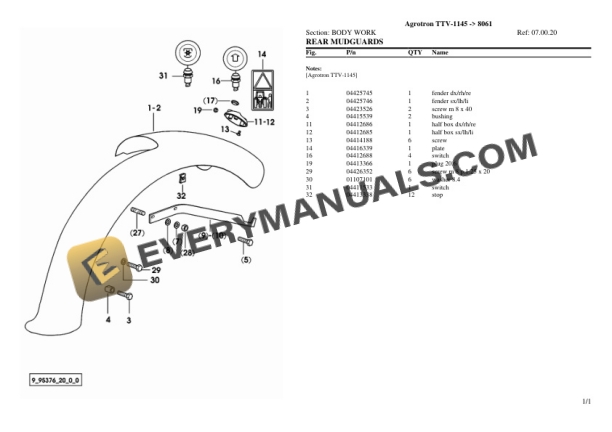Deutz-Fahr Agrotron TTV-1145 (8061) Tractor Parts Catalog PDF