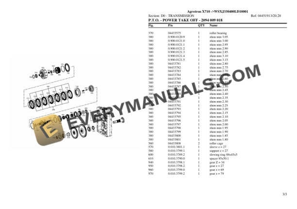 Deutz-Fahr Agrotron X710 (WSXJ330400LD10001) Tractor Parts Catalog PDF