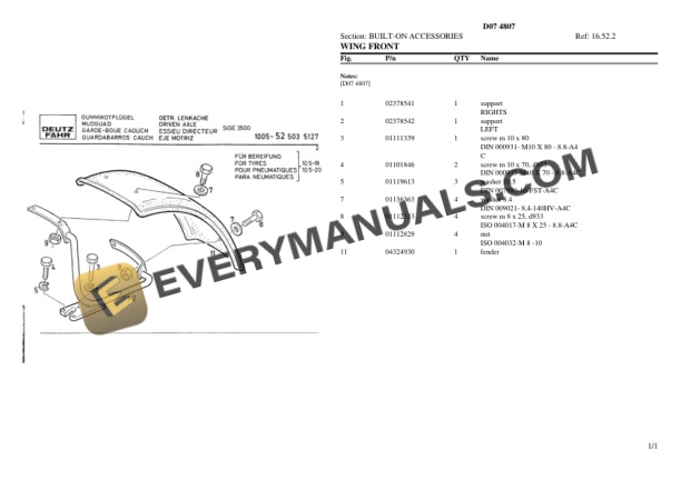 Deutz-Fahr D07 4807 Tractor Parts Catalog PDF