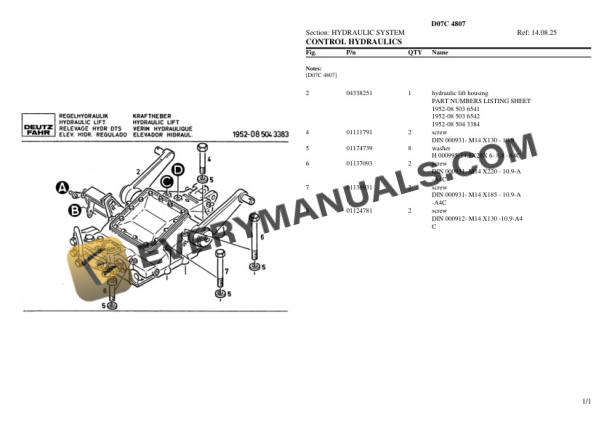 Deutz-Fahr D07C 4807 Tractor Parts Catalog PDF