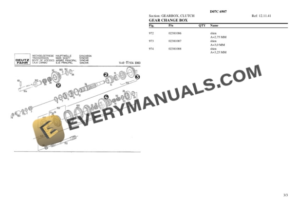 Deutz-Fahr D07C 6907 Tractor Parts Catalog PDF