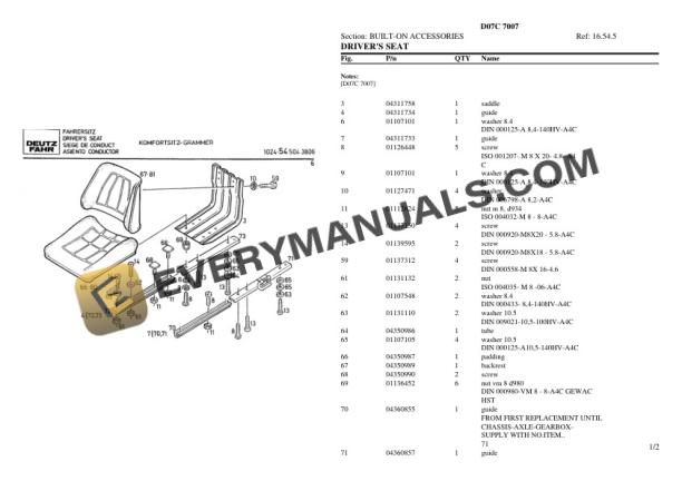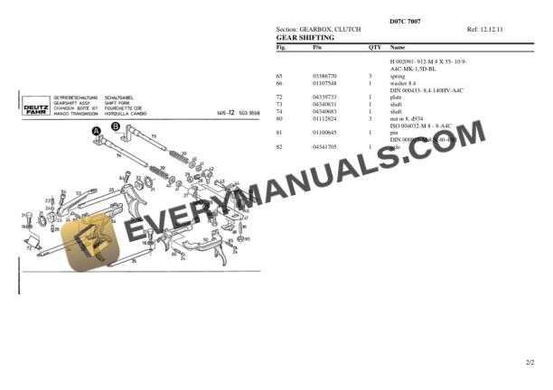 Deutz-Fahr D07C 7007 Tractor Parts Catalog PDF