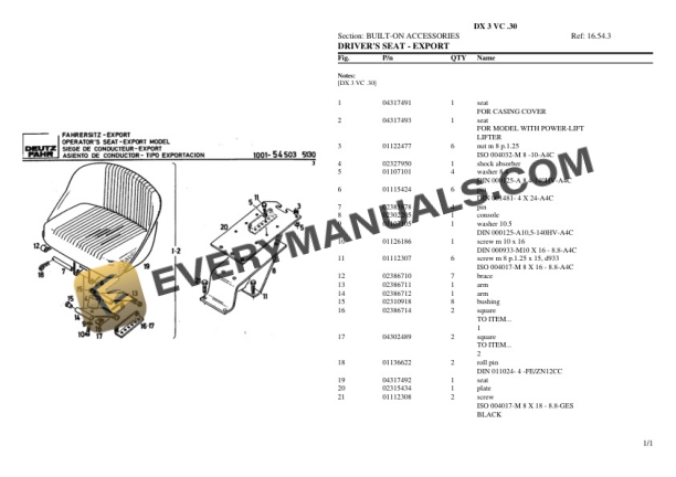 Deutz-Fahr DX 3 VC .30 Tractor Parts Catalog PDF