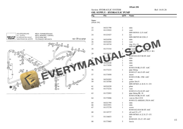 Deutz-Fahr DXab 250 Tractor Parts Catalog PDF