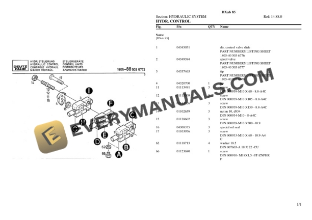 Deutz-Fahr DXab 85 Tractor Parts Catalog PDF