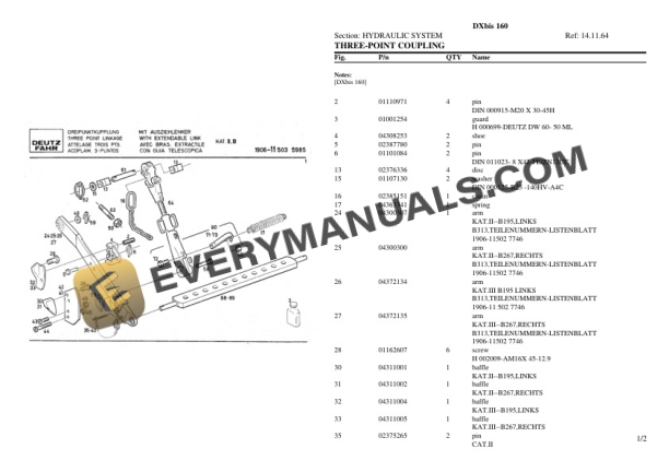 Deutz-Fahr DXbis 160 Tractor Parts Catalog PDF