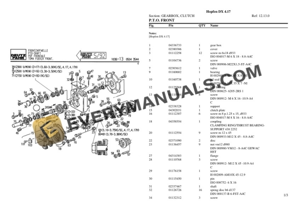 Deutz-Fahr Hopfen DX 4.17 Tractor Parts Catalog PDF