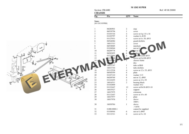 Deutz-Fahr M 1202 SUPER Tractor Parts Catalog PDF