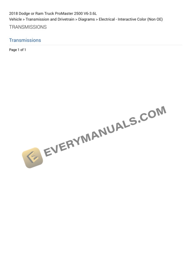 Dodge or Ram Truck ProMaster 2500 2018 Elactrical Diagrams V6-3.6L