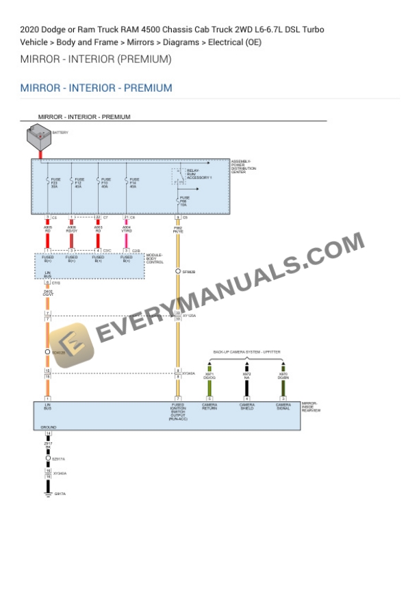 Dodge or Ram Truck RAM 4500 Chassis Cab Truck 2WD 2020 Elactrical Diagrams L6-6.7L DSL Turbo