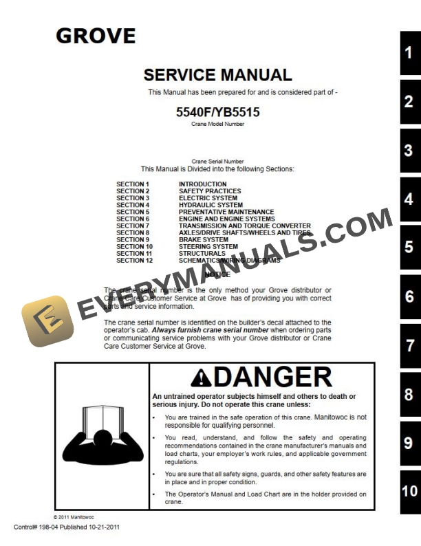 Grove YB5515 Crane Operators, Parts, Service Manual