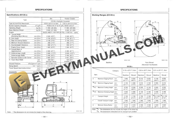 Hitachi EX100-3 EX100M-3 EX120-3 Excavator Operator Manual EM12S-1-3