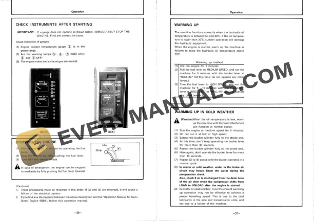Hitachi EX100W EX100WD Excavator Operator Manual EM11A-1-1