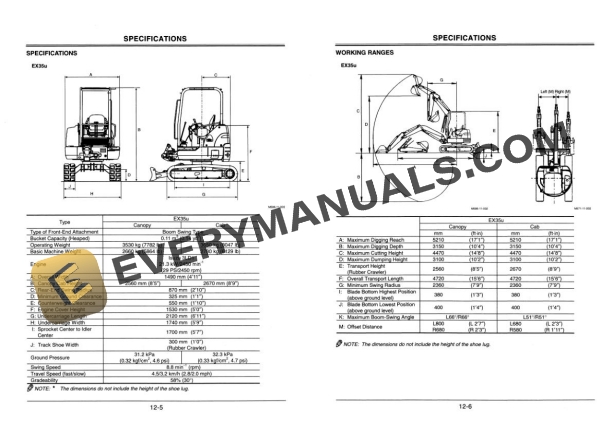Hitachi EX37Y EX35U EX50U Excavator Operator Manual EM1BU-NA4-1