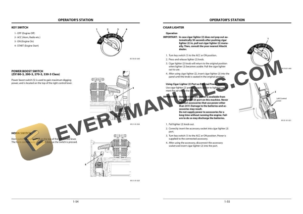 Hitachi Zaxis ZX120-3 to 330-3 Class Excavator Operator Manual EM1U1-3-1