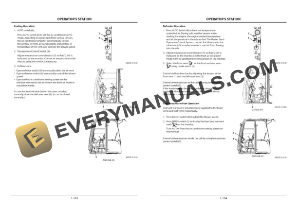 Hitachi Zaxis ZX75US-5N 85USB-5N Hydraulic Excavator Operator Manual ENMDEC-NA1-7
