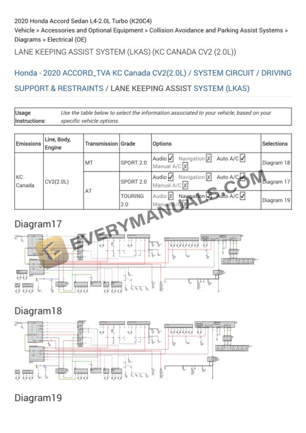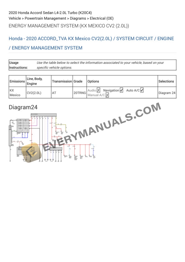 Honda Accord Sedan 2020 Electrical Diagrams L4-2.0L Turbo (K20C4)