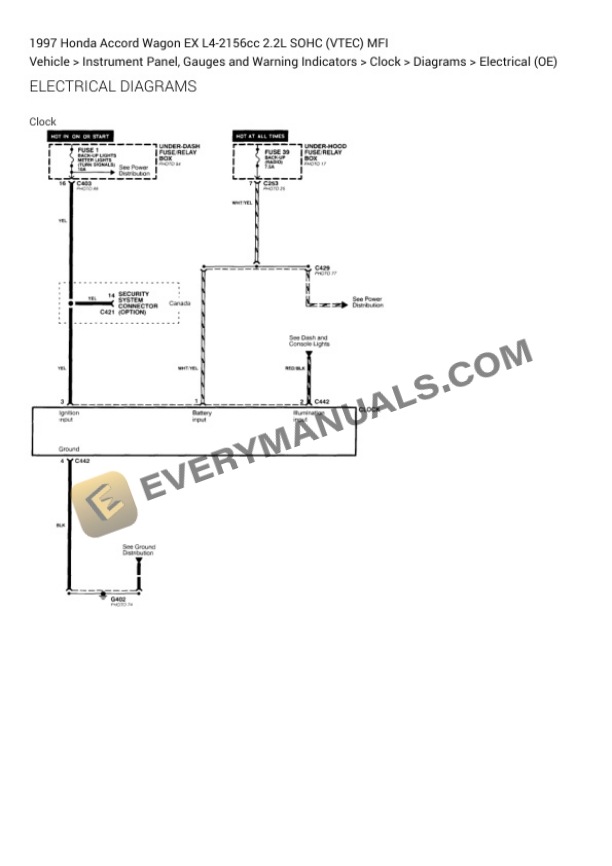 Honda Accord Wagon EX 1997 Electrical Diagrams L4-2156cc 2.2L SOHC (VTEC) MFI