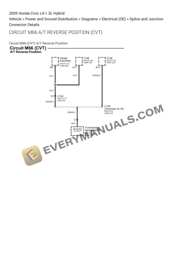 Honda Civic 2005 Electrical Diagrams L4-1.3L Hybrid