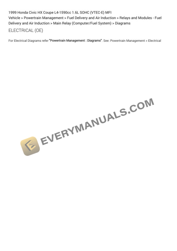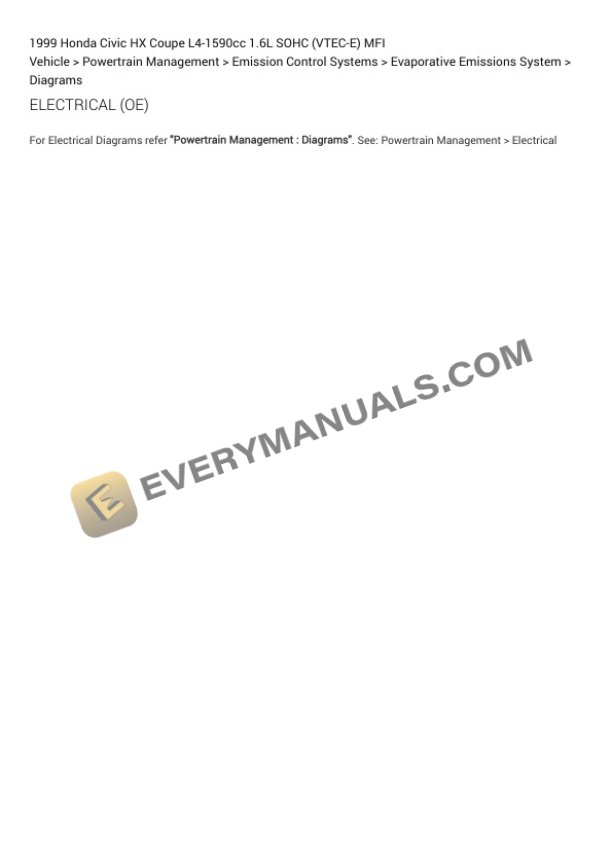 Honda Civic HX Coupe 1999 Electrical Diagrams L4-1590cc 1.6L SOHC (VTEC-E) MFI