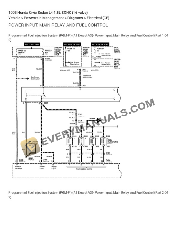 Honda Civic Sedan 1995 Electrical Diagrams L4-1.5L SOHC (16 valve)