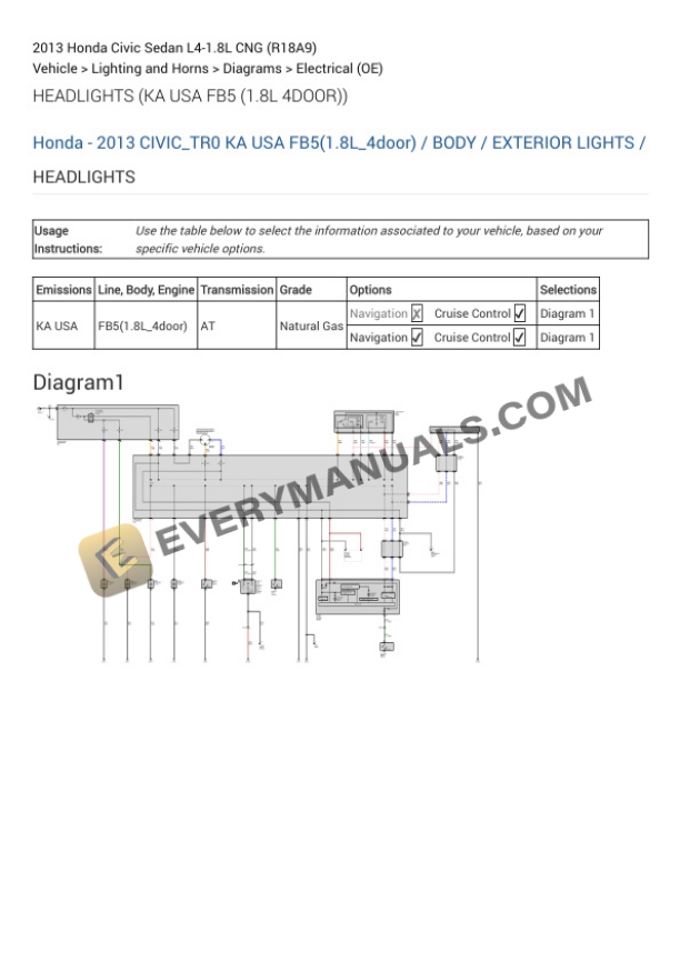 Honda Civic Sedan 2013 Electrical Diagrams L4-1.8L CNG (R18A9)