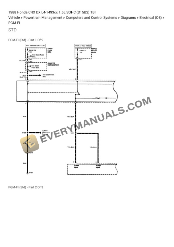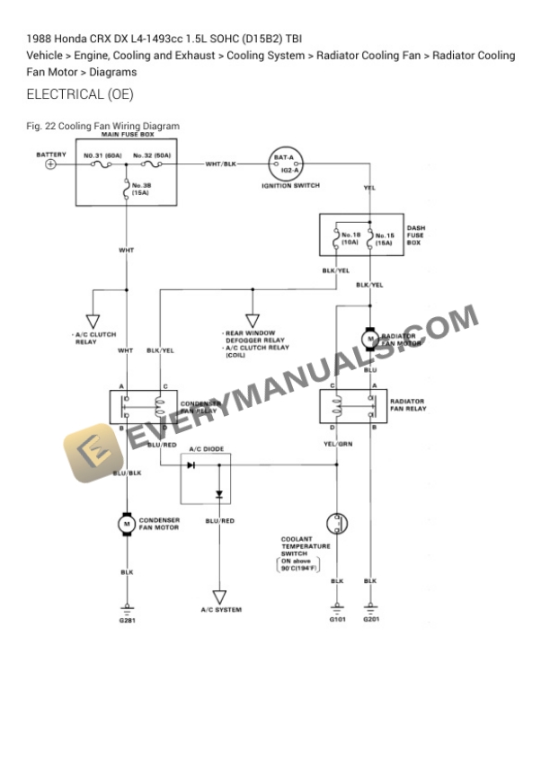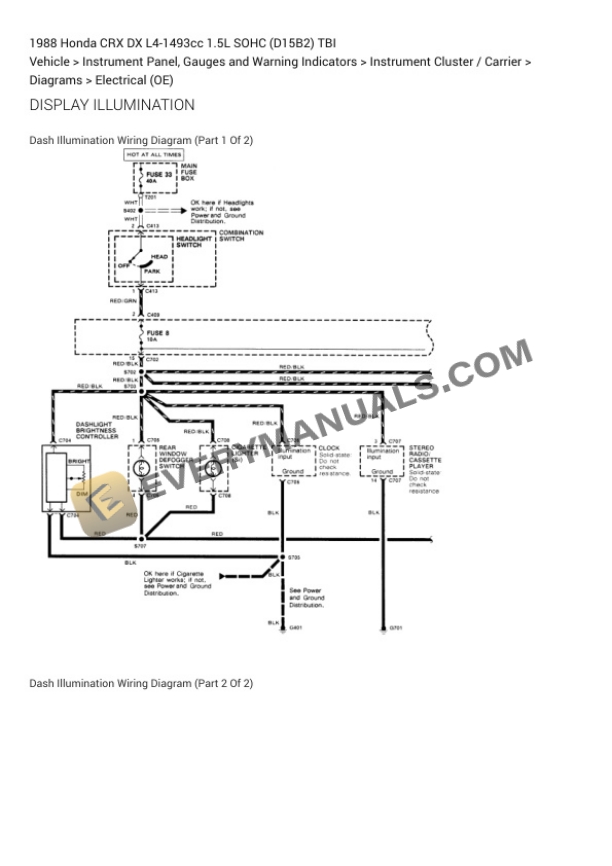 Honda CRX DX 1988 Electrical Diagrams L4-1493cc 1.5L SOHC (D15B2) TBI