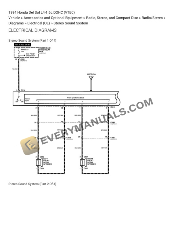 Honda Del Sol 1994 Electrical Diagrams L4-1.6L DOHC (VTEC)