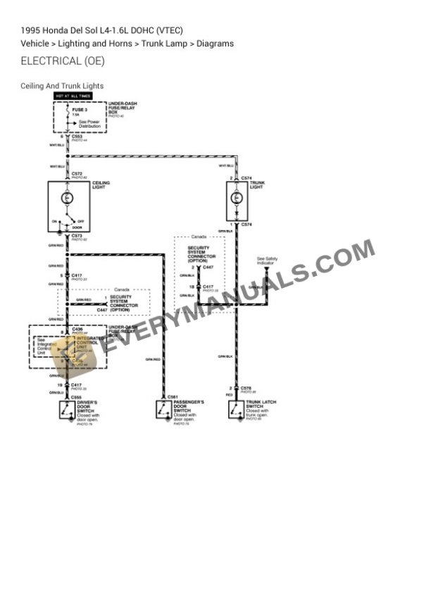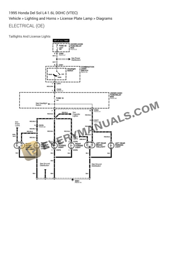 Honda Del Sol 1995 Electrical Diagrams L4-1.6L DOHC (VTEC)