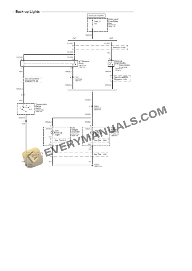 - 14. Exterior Lights – Back-up Lamps Circuit