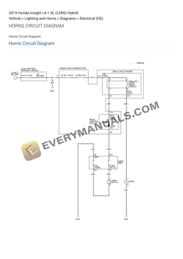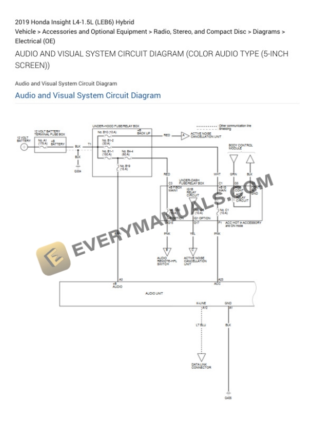 Honda Insight 2019 Electrical Diagrams L4-1.5L (LEB6) Hybrid