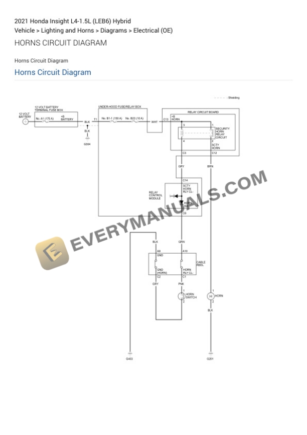 Honda Insight 2021 Electrical Diagrams L4-1.5L (LEB6) Hybrid