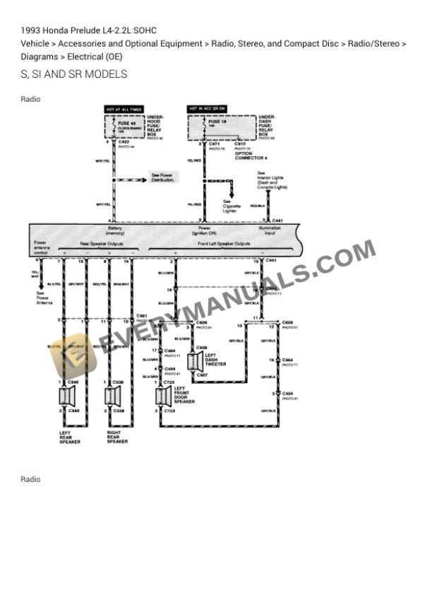 Honda Prelude 1993 Electrical Diagrams L4-2.2L SOHC