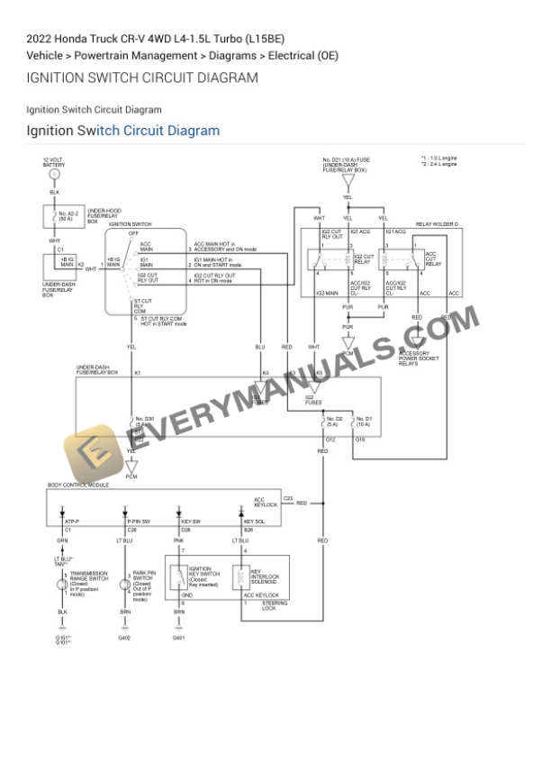 - 185. Fuel and Emissions Systems Circuit Diagram (1.5 L Engine)