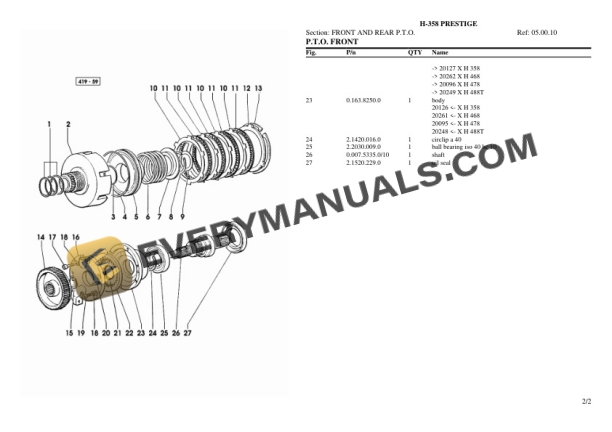 Hurlimann H-358 PRESTIGE Tractor Parts Catalog PDF