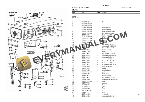 Hurlimann H-361 V Tractor Parts Catalog PDF