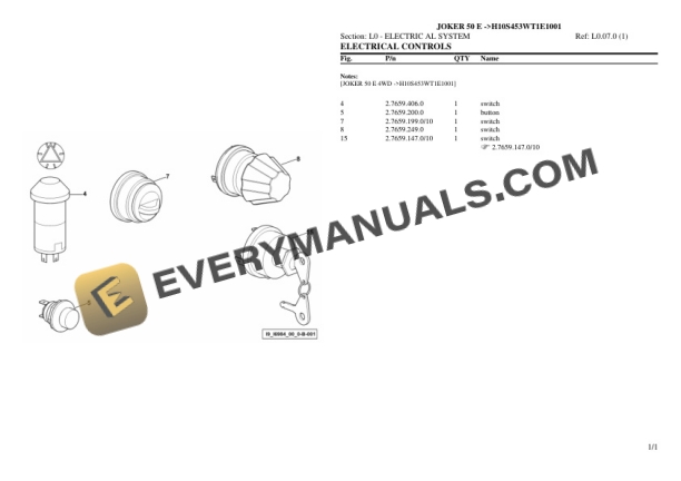 Hurlimann JOKER 50 E (H10S453WT1E1001) Tractor Parts Catalog PDF